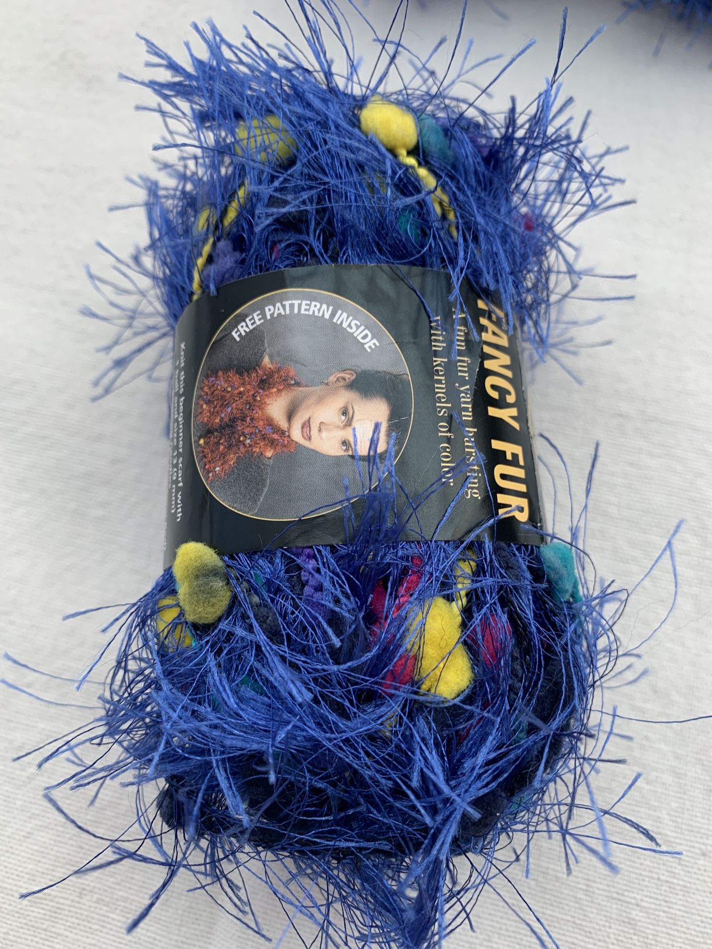 Lion Brand fancy fur yarn made in Italy. 39 yards in brilliant blue. Washable Polyester fiber. Beautiful for scarf, cowl, hat or mix with other yarns for accent. Lot of 4.