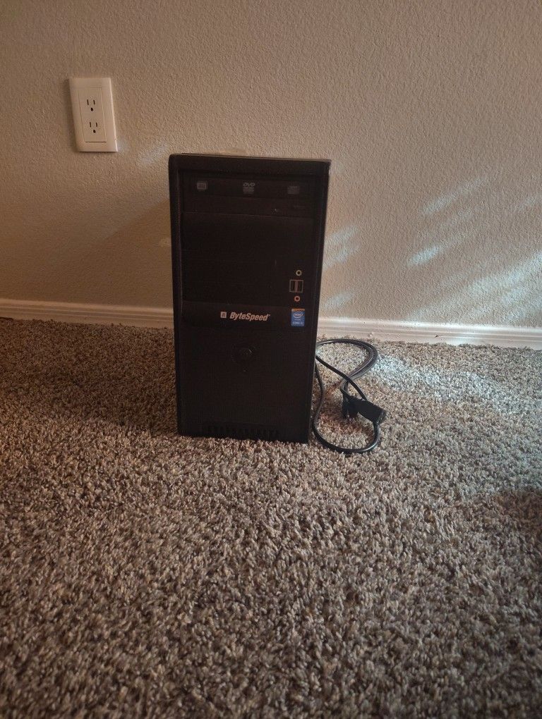 ByteSpeed desktop computer. Does not power on, no lights or fans when pressing the power button. Specs are unknown. Sold AS-IS for parts or repair. No returns. Pickup only.
