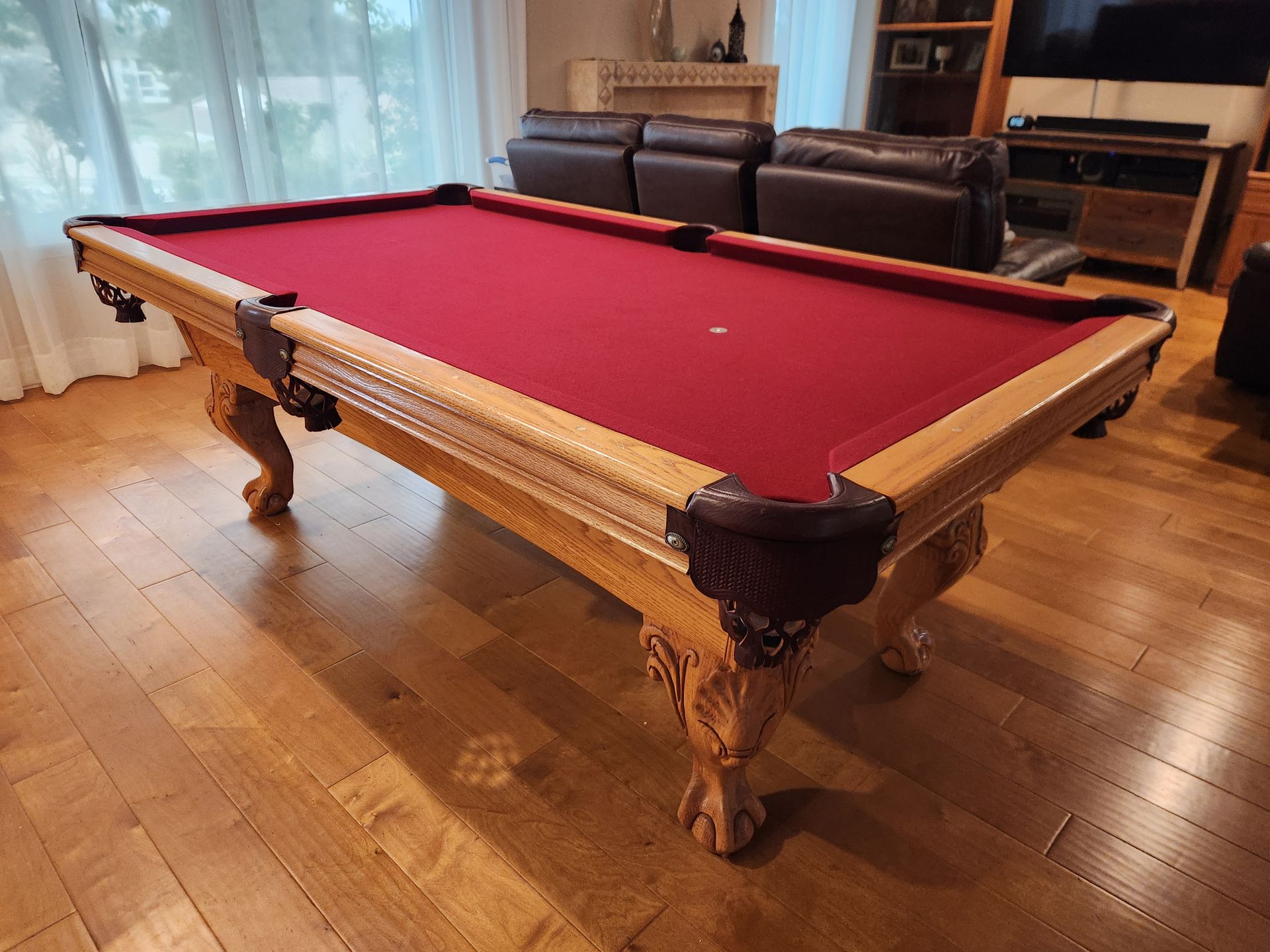 Pool table cloth available for pool tables , we have around 26 colors and optional upgrades.....we do the install also have bumpers pockets Relocation accessories balls etc.....please send message for proper pricing.....