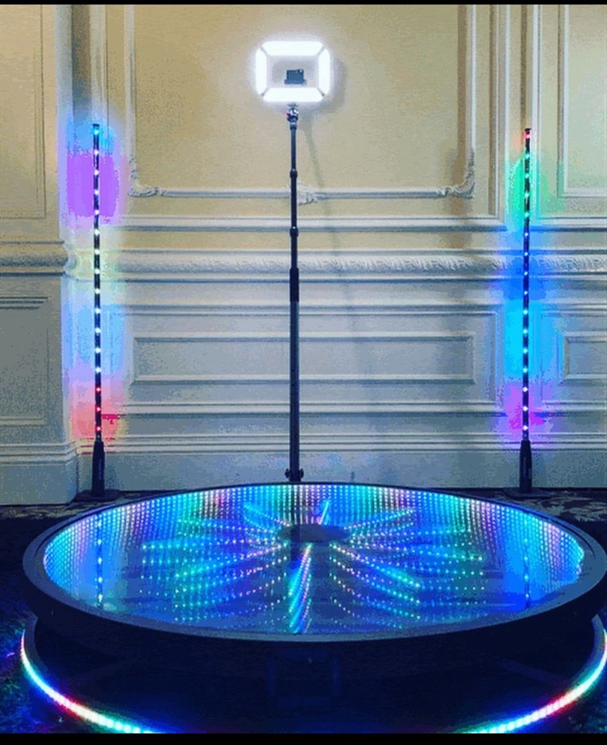VIP glass 360 Photo Booth. App controlled Comes with case and 2 led pole lights New Downsizing and don’t need it at this time