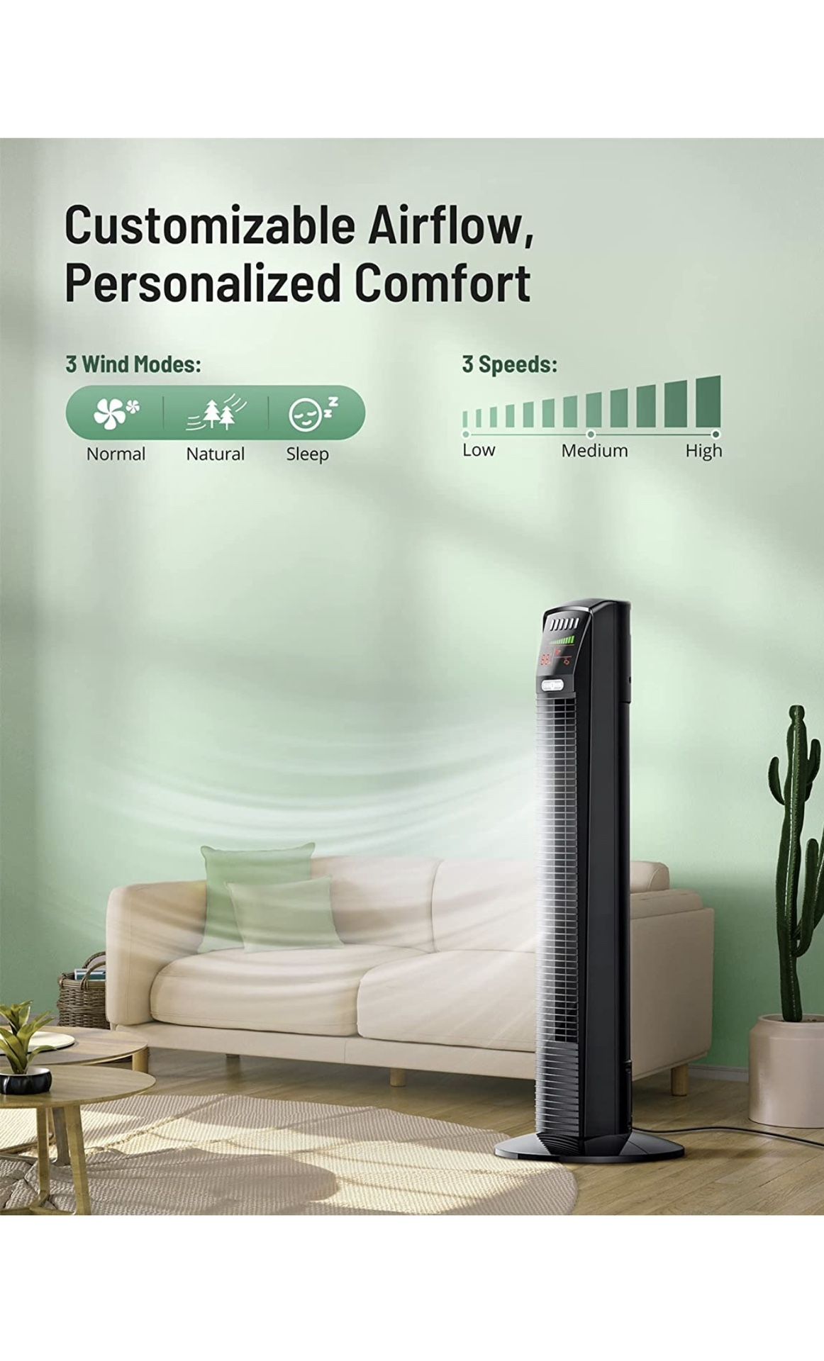 Cooling Fan with Remote, Digital Thermostat,12H Timer, 3 Speeds & 4 Modes