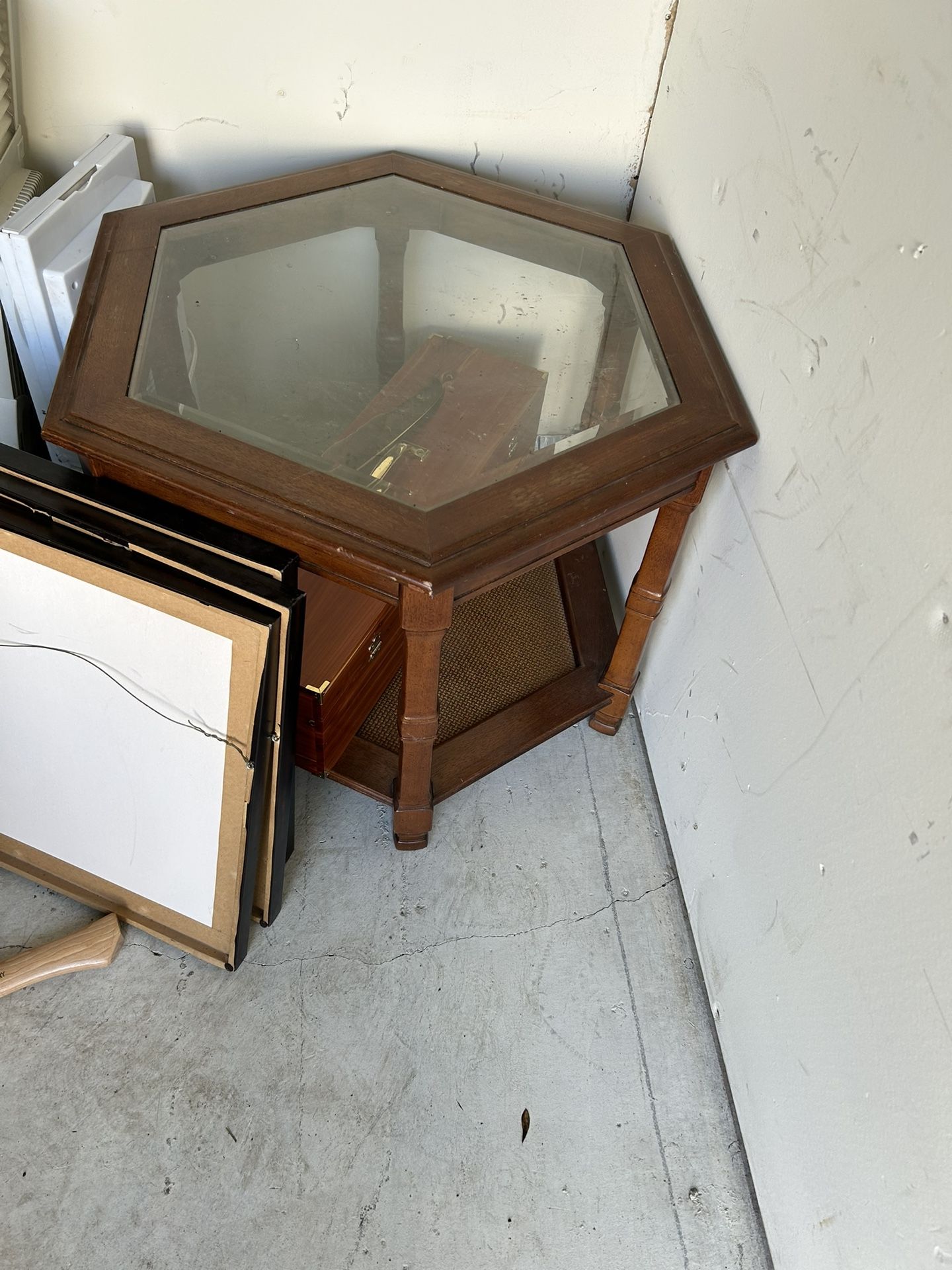 Hexagonal Shaped Table With Glass Top