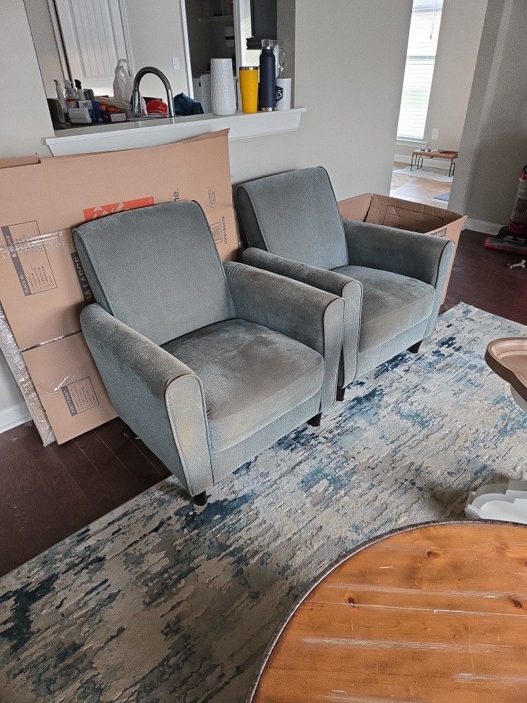 I have 2 gently used chairs for sale. They are teal in color. I am asking $80 for both. They will need to be picked & loaded by buyer.