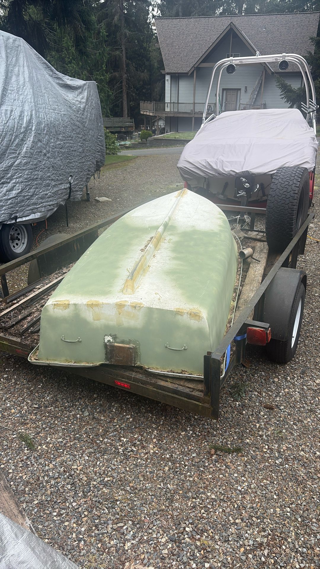 10ft by 4 ft fiberglass boat No leeks!!!! Got it on Facebook market place last year wanted to fix it up but only took it out a cupple of times I wanted to fix some of the rough spots and planed on putting fiberglass down and wanted to sand and paint but only put fiberglass down in spots that rub a lot Great little boat send offers Located next to lake ridge middle school