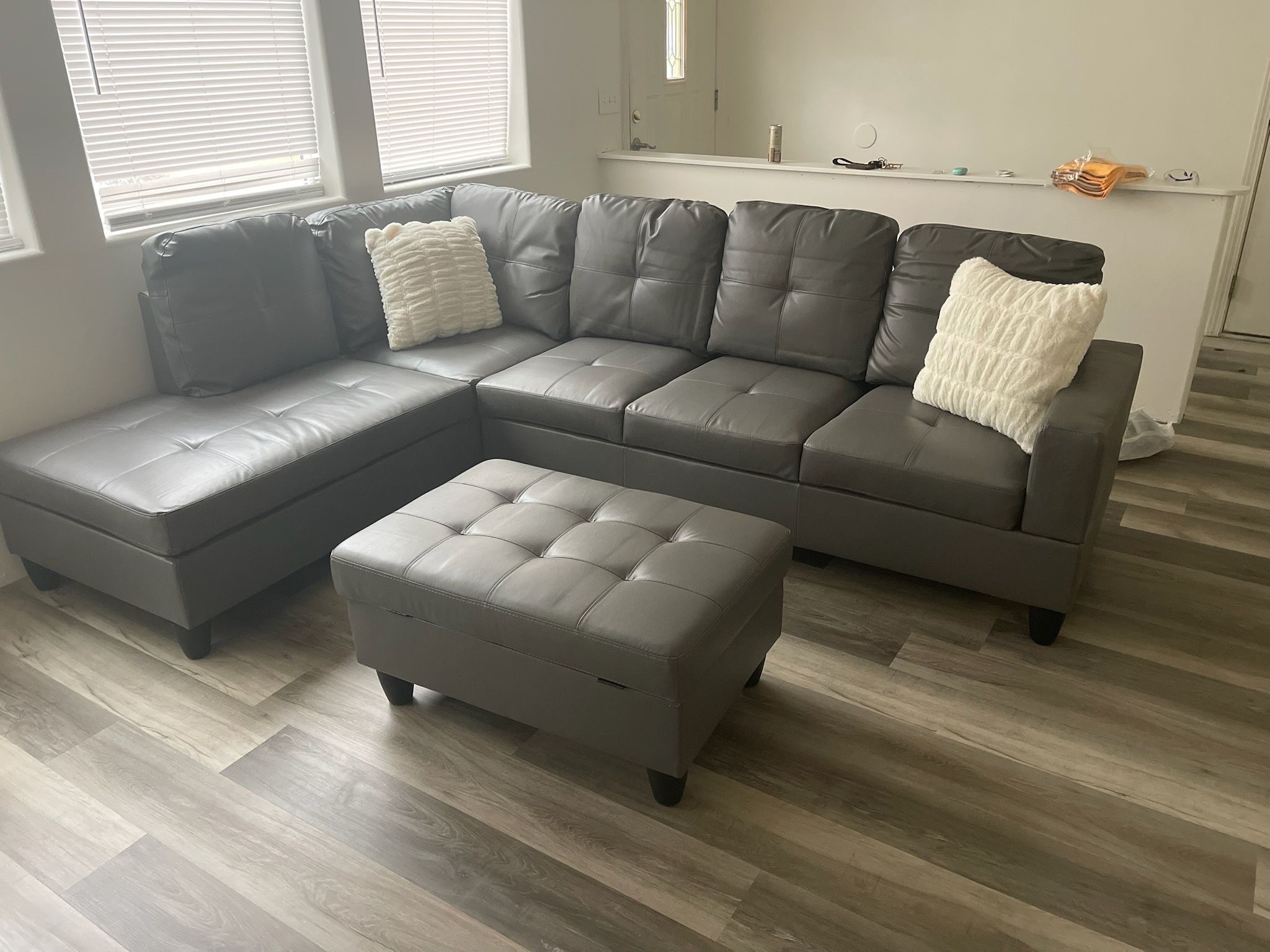 Brand new still in packaging with decorative pillows and storage ottoman included this is display picture Delivery to all areas