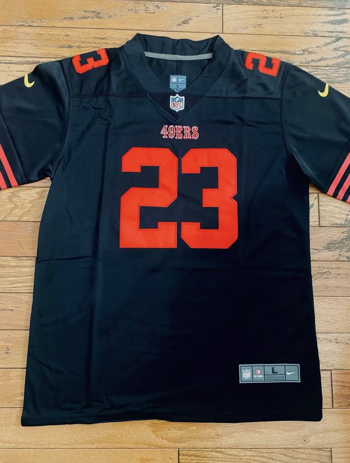 San Francisco 49’ers Christian McCaffrey jersey #23 black and red NFL