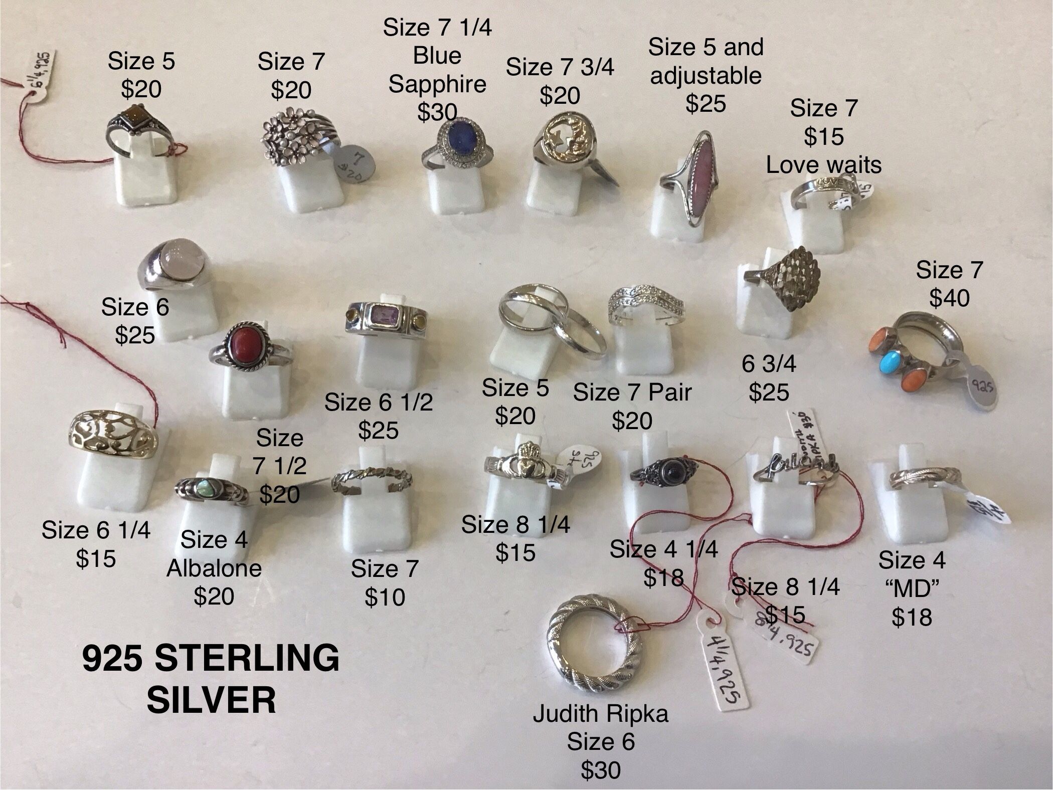 925 Sterling Silver Rings, see pics for prices, size 4 and up