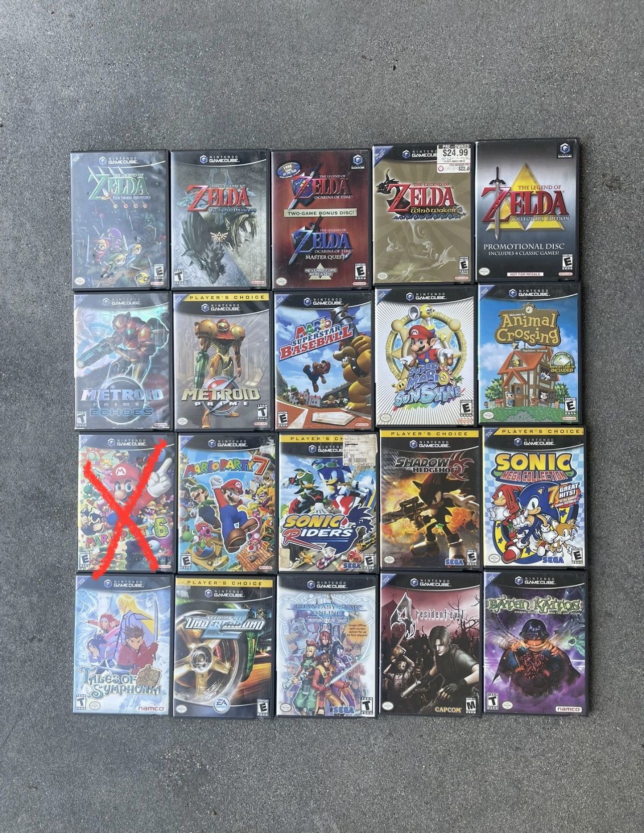 Nintendo GameCube games $25 and up each Second photo are disc only Used tested and working / normal wear light scratches Mario sunshine Mario party 7 Spyro Zelda ocarina of time Scooby-doo Sonic collection Sonic riders Metriod Resident evil Underground 2 Tales of symphony Phantasy star Animal crossing Mario baseball Simpsons hit & run Sonic adventures dx Mario golf Pikmin Luigi’s mansion Mario party 4 Mario party 6 Zelda ocarina of time Zelda Windwaker Kirby air ride Smash bros melee Tony hawk Ssx tricky Rabbit king plus very rare Wario world “no manual”