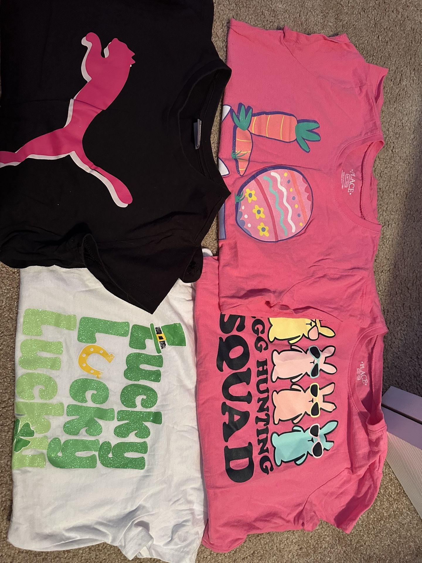 15 short sleeve shirts !!! 1 pair of short Size 10/12 In good condition!! 2 Easter shirts 1 st. Patty Barbie Puma 2 under armour Total $15 Cash only