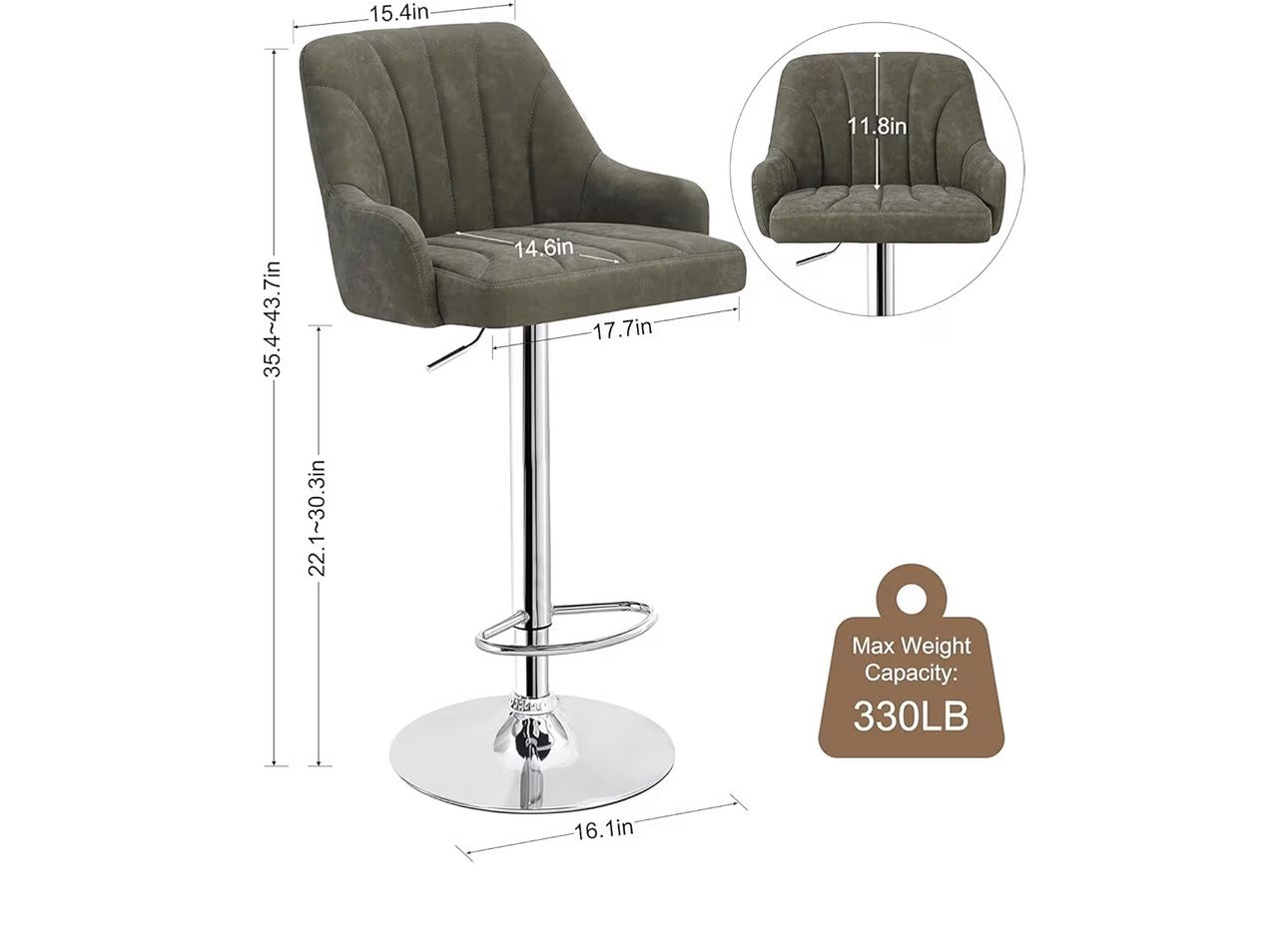 VECELO Adjustable Barstools Set of 4, Counter Bar Stools with Back and Arm, Kitchen Island Stools Swivel Bar Chairs for Pub Dinning Room, Dark Gray Ask for separate.
