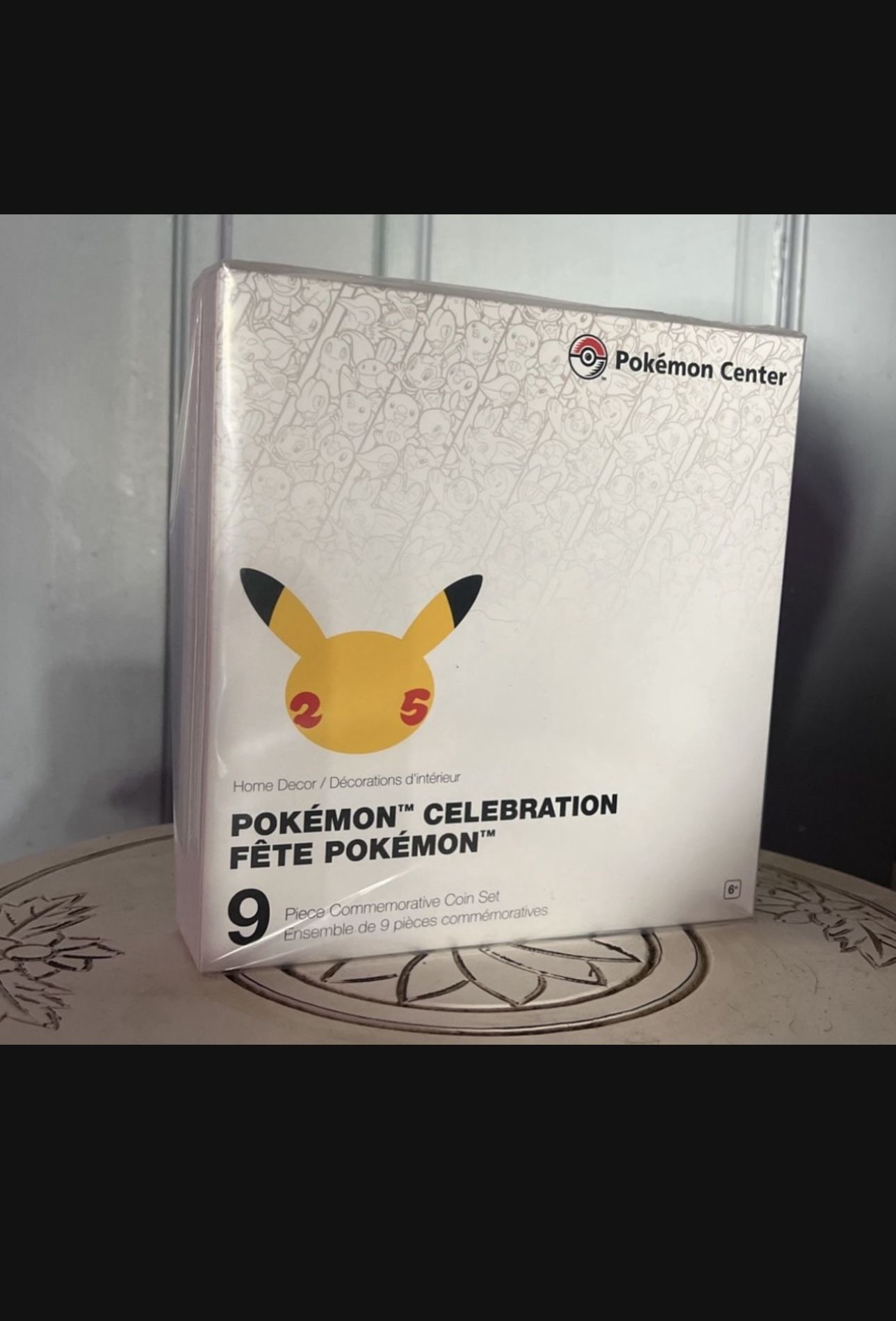 Celebrate 25 fantastic years of Pokémon with this commemorative coin set! These coins are not a toy; keep away from children Part of the Pokémon Celebration collection Pokémon Center Original More Details: Item Dimensions: 7.8 × 7.8 × 1.5 IN Country Of Origin: Made in China Materials: Sterling silver-plated zinc alloy Item Weight: 1.8 LB