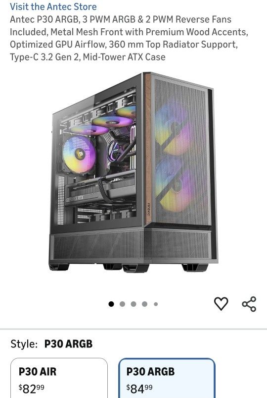 Antec P30 ARGB, 3 PWM ARGB & 2 PWM Reverse Fans Included, Metal Mesh Front with Premium Wood Accents, Optimized GPU Airflow, 360 mm Top Radiator Support, Type-C 3.2 Gen 2, Mid-Tower ATX Case