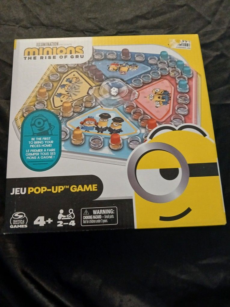 The Minions Trouble Board Game 2013 Pop O Matic Edition by Spin Master Games is a fun and engaging game for kids aged 4-7. With a game board featuring popular Minion characters, this interactive board game is designed for 2 players and provides hours of entertainment. Players can roll the dice, move around the game board, and collect cards based on their roll, all while strategizing to outwit their opponent. With its unique gameplay mechanics and colorful design, this game is sure to be a hit with young gamers.