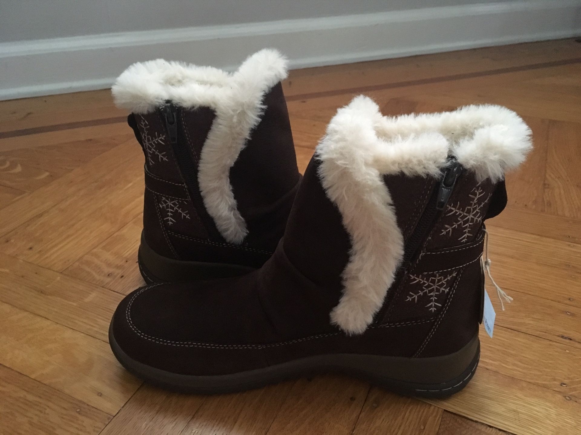 Brand new in box. Women’s size 8. Adorable, waterproof leather boots with embroidered snowflakes. Memory foam insole. North side of Indy. Price firm. Will ship promptly. Check my reviews!