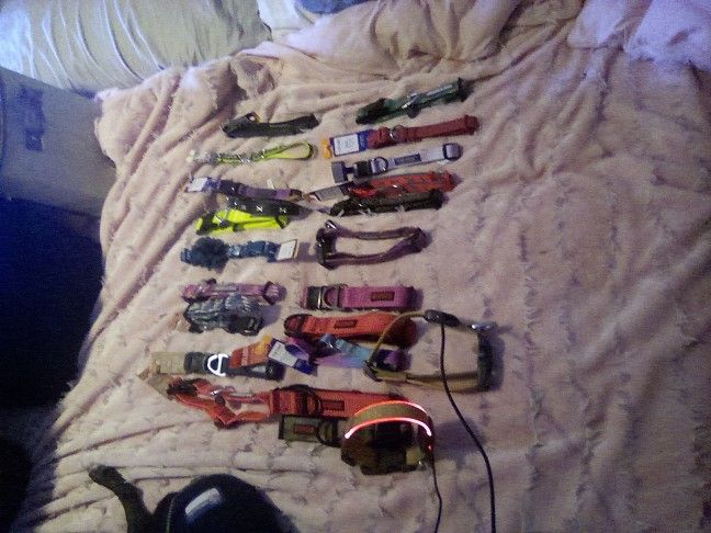 Dog collars. Never worn. Most of them still have tags on them. These are mostly female dog collars however there are 6-8 that are male dog collars.