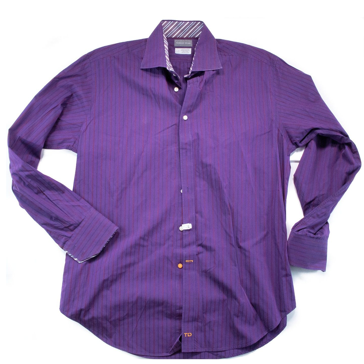 Thomas Dean brand Size Large Purple vertical stripes Long sleeve Original $95