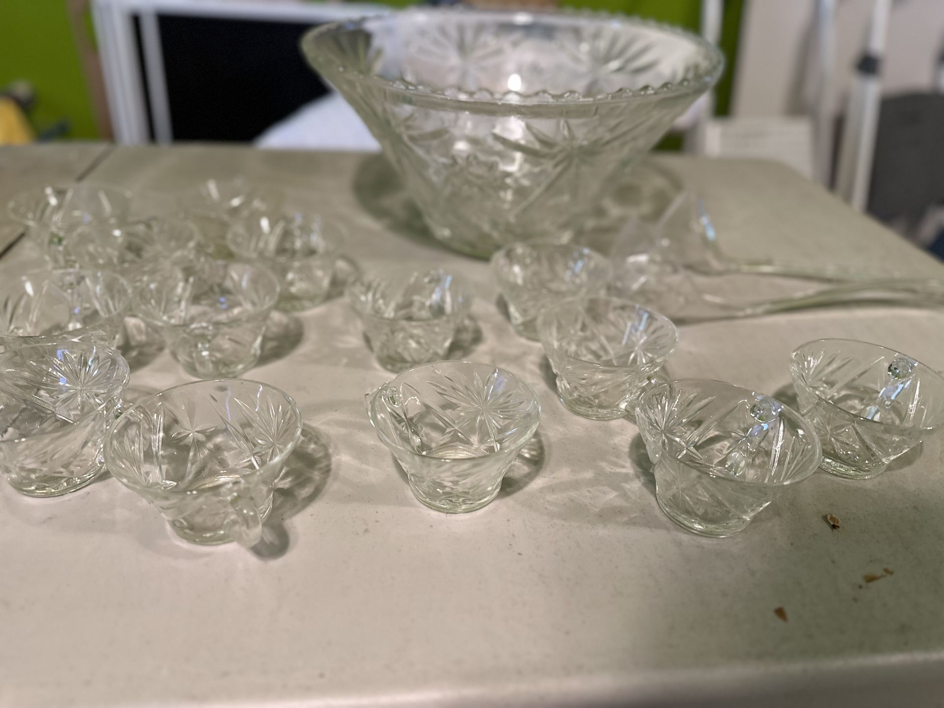Anchor Hocking Early American Prescut (EAPC) punch bowl set