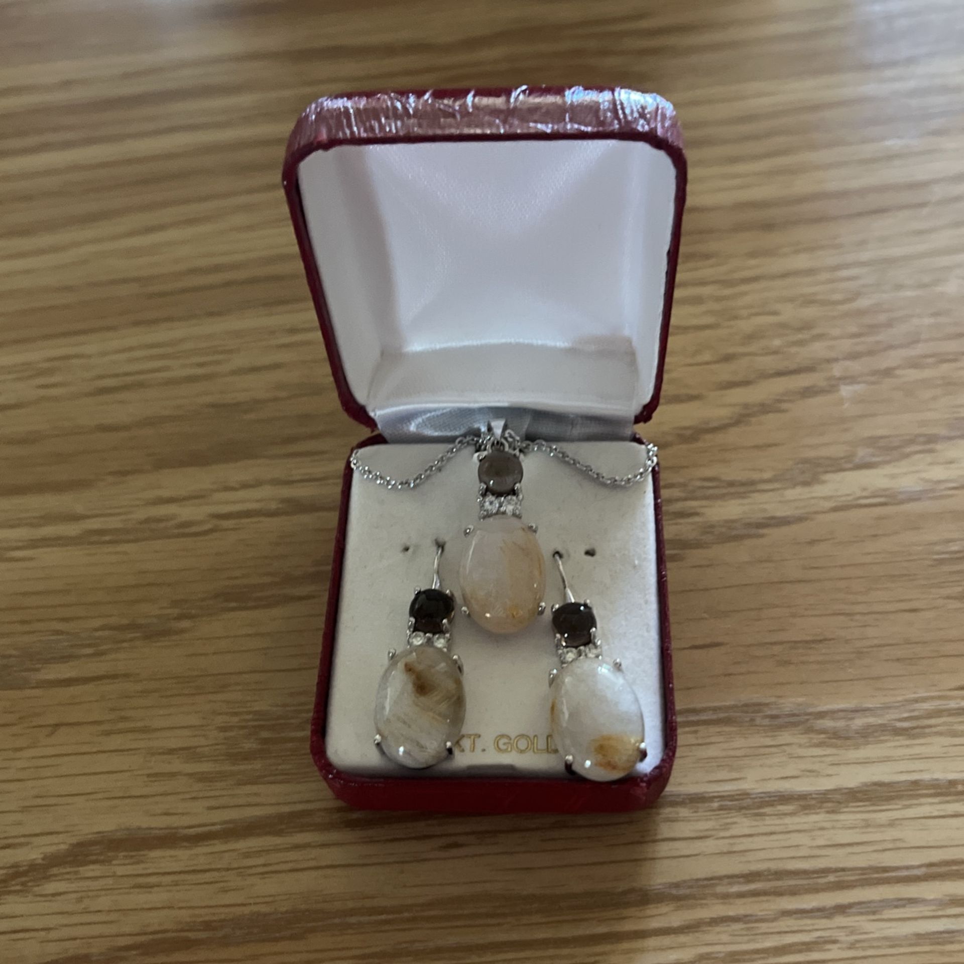 Never worn. Beautiful necklace set with a different kind of setting with genuine stones.