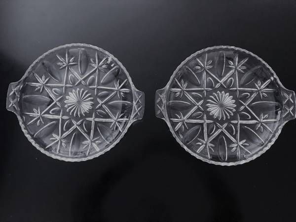 Vintage Pair Depression Eared Starburst Serving Platters / Plates