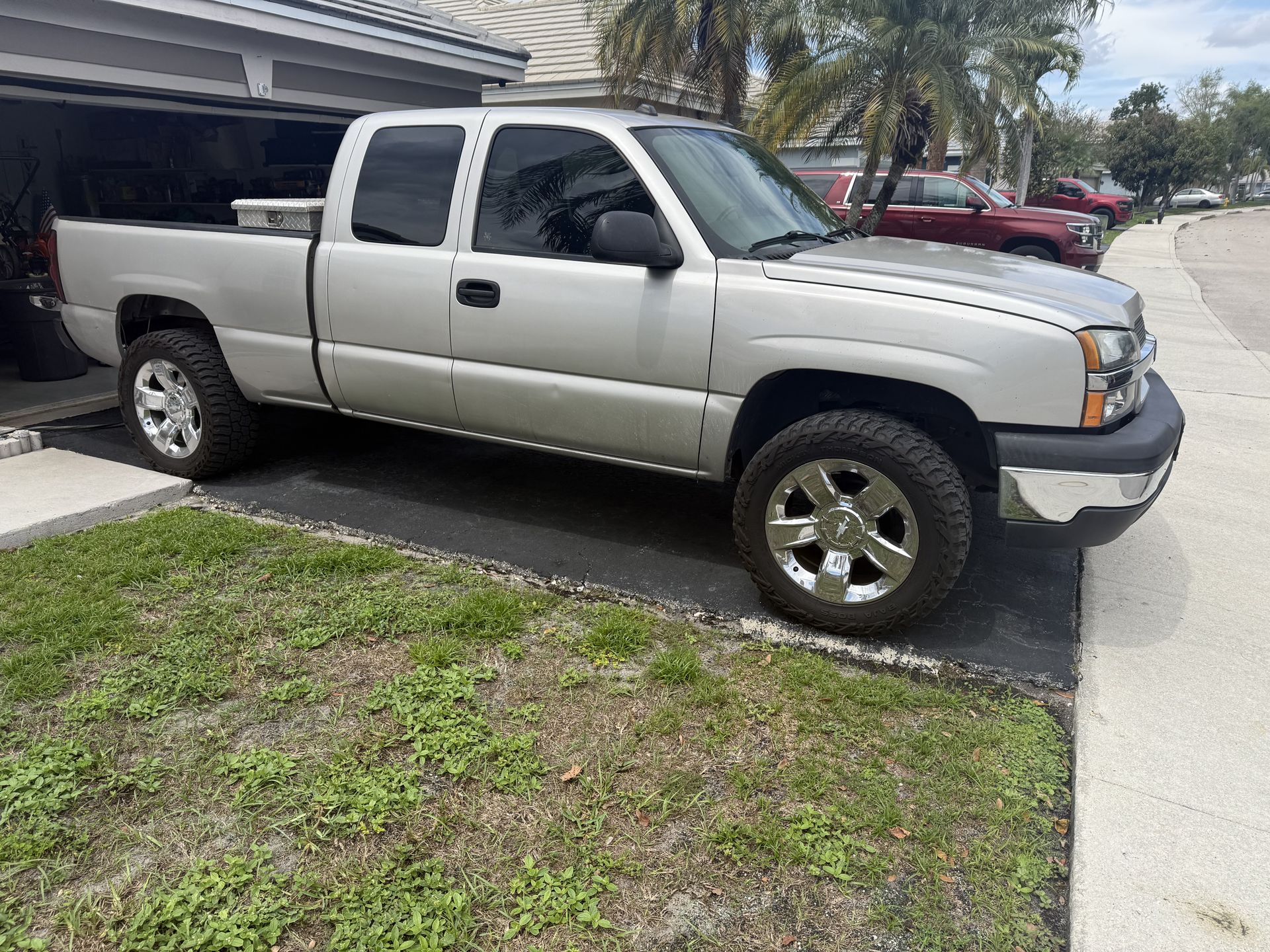 2004 Chevy Silverado 1500 5.3L V8 with 102k miles with new set of 33 by 12.5r20 Mickey thompsons truck runs strong no issues clean body clean interior ac blows cold also I’m throwing in toolbox asking $8K obo open to offers.