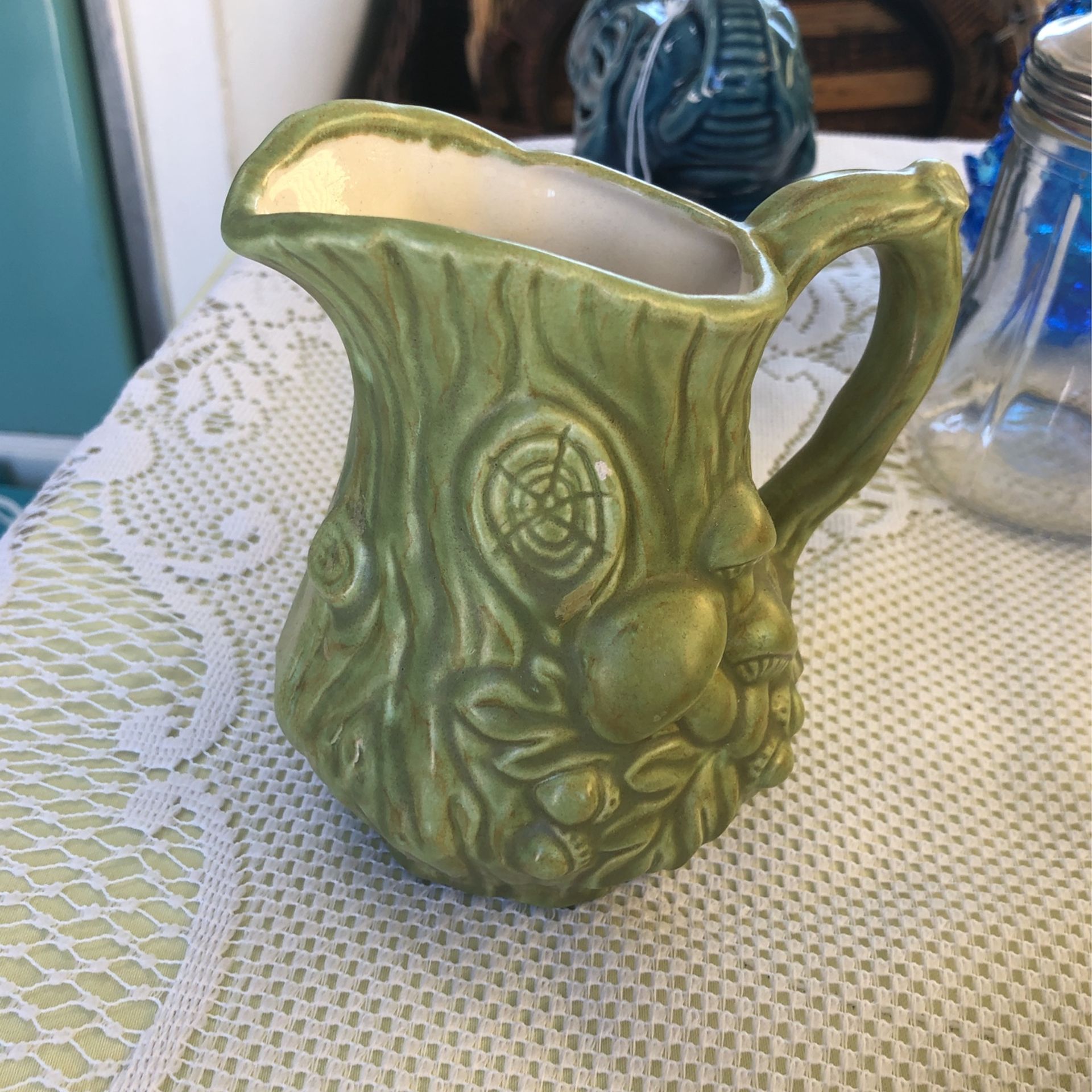 70s Tree Trunk Green Mushroom Creamer Pitcher 5”