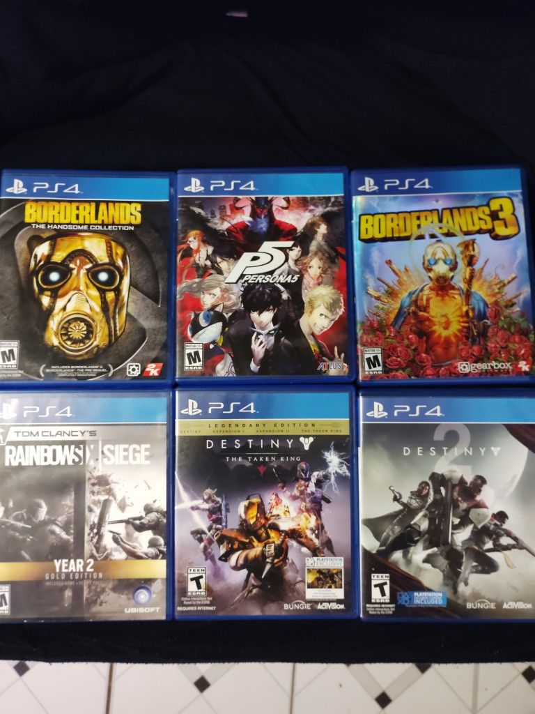 All like new condition All cost $10 can deliver for 4 Games: Borderlands The Handsome Collection Borderlands 3 Persona 5 Original Destiny The Taken King Destiny 2