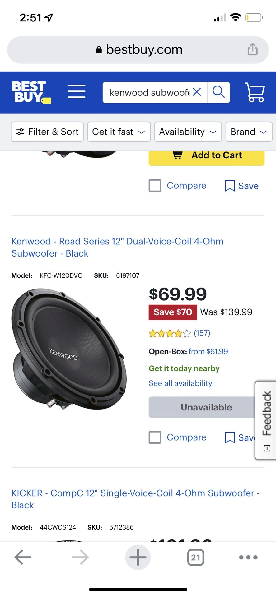 Subwofer Kenwodd Usado Buen Estado (solo)