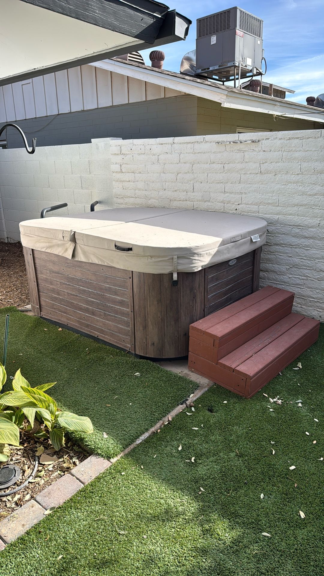 Well maintained, serviced every 3 months. Needs new filters. Still under warranty until August 2026. Bought at SouthWest spas in Mesa White in color Jets fully functional Mood lights Top cover