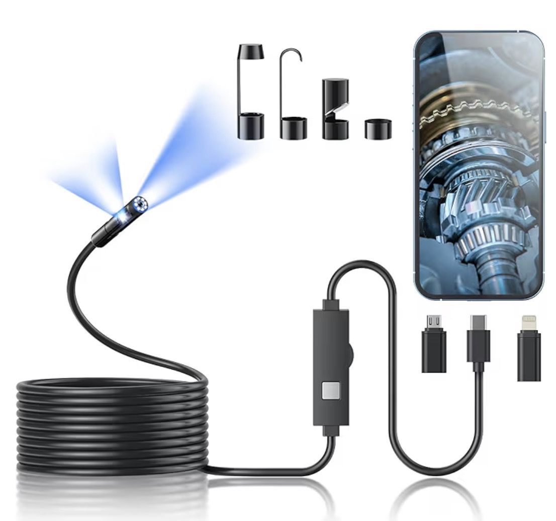 Endoscope Camera with Light,1920P HD Borescope Tools with 8 Adjustable LED Lights, Endoscope with Semi-Rigid Snake Camera, IP67 Waterproof Inspection Borescope for iOS and Android-16.4ft Dual-Lens