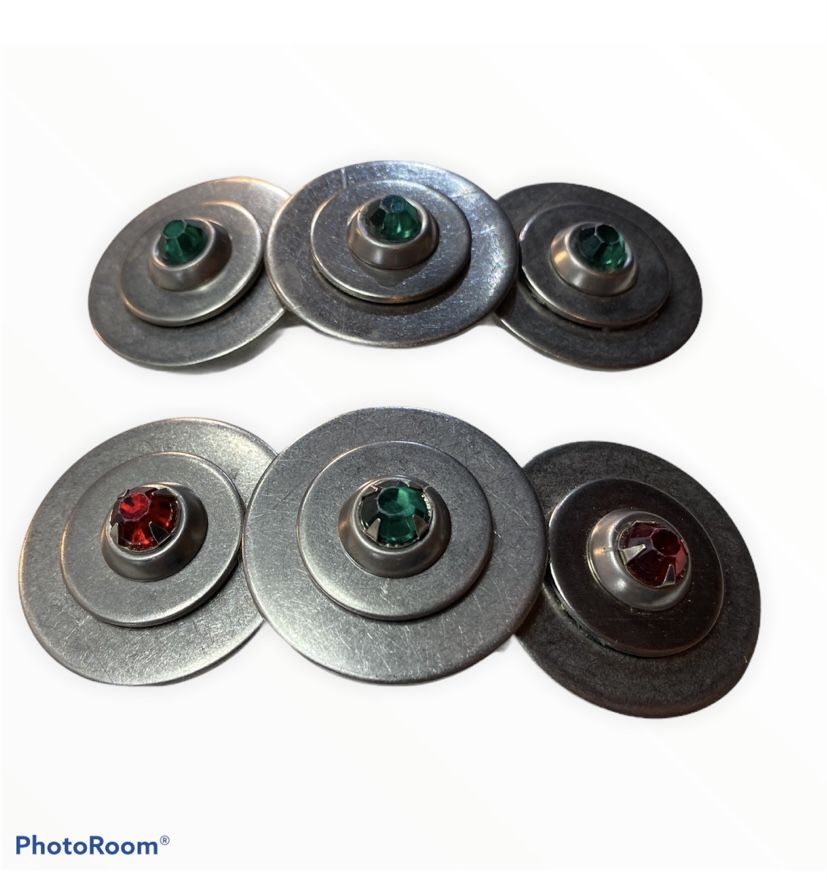 Lot (2) Barrette Hair Clip Christmas Holiday Artist Hand Made Urban Silver Metal These One of a kind large barrettes are made by combining regular metal washers ( think carpentry) to create a sculptural barrette urban chic piece which is then accented with red & green rhinestones. SEE PHOTOS FOR MEASUREMENTS!