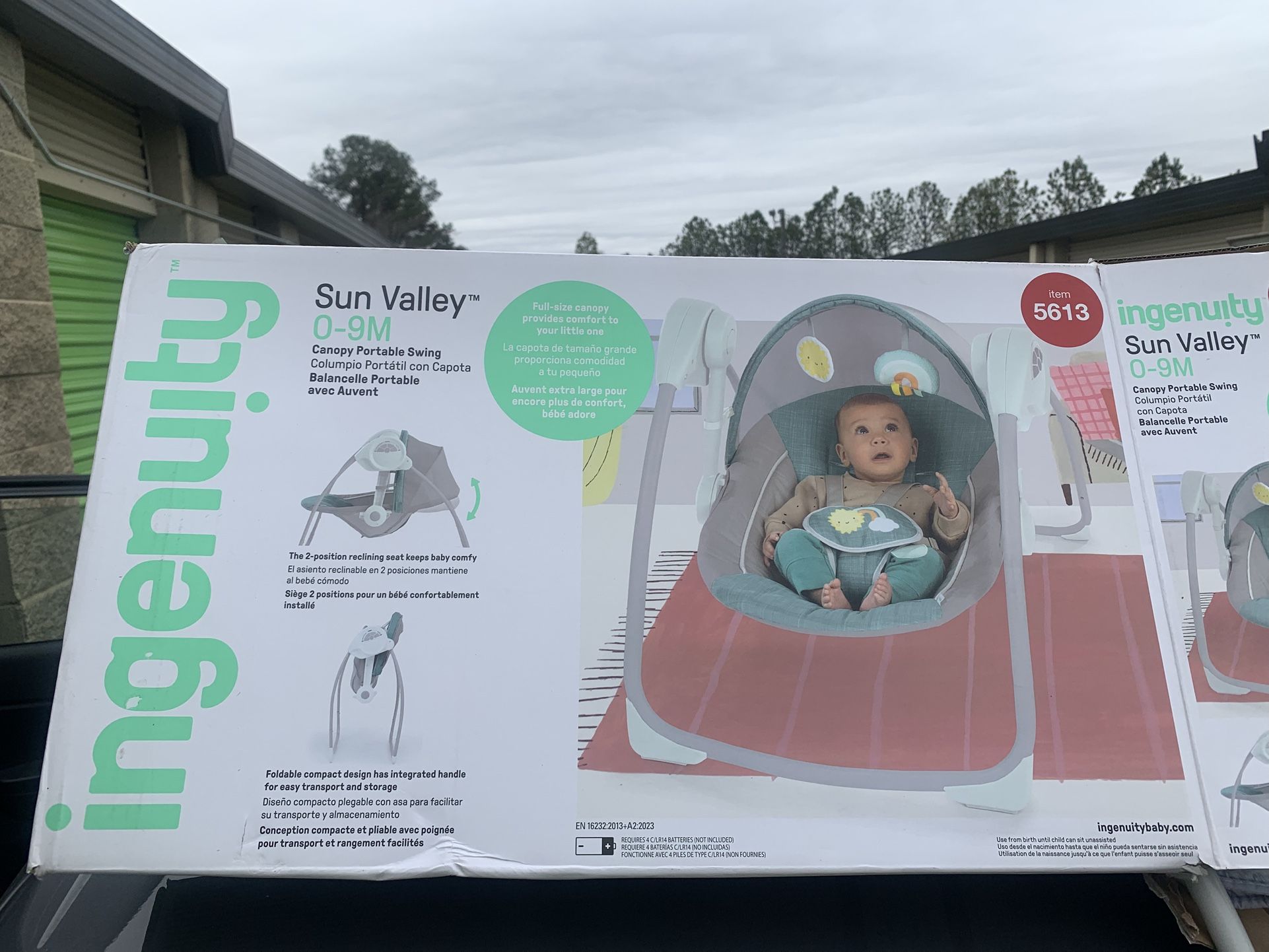 Ingenuity portable swing is still in good condition only part missing is the cover for the batteries. Smoke free environment. Willing to deliver for a fee. Product isn’t put together completely so it looks better once fully put together