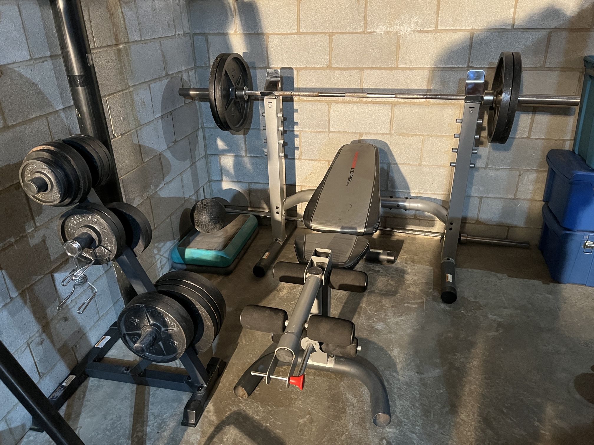 Adjustable Weight Bench Set comes with (2) 45lb Bars Weight Stand with 470 lbs of Weights (4) 45’s (4) 35’s (2) 25’s (6) 10’s (7) 5’s (2) 2.5’s