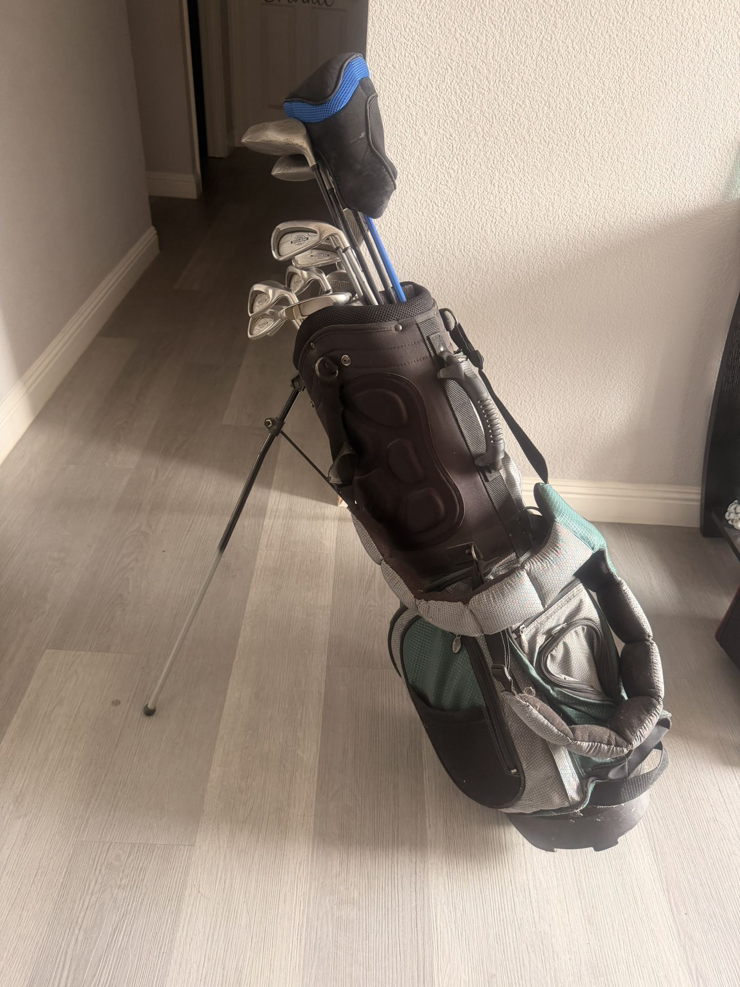 Set of golf clubs with a stand bag