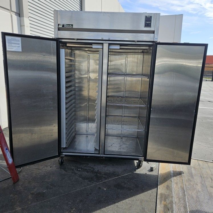 With Pan Racks, all Stainless Interior and Exterior, top condition, superbly clean. Get free local delivery, one full year warranty period. NSF Commercial Standard, made in the USA by True Refrigeration Corporation, stainless for long life and durability. American made for quality and dependability.