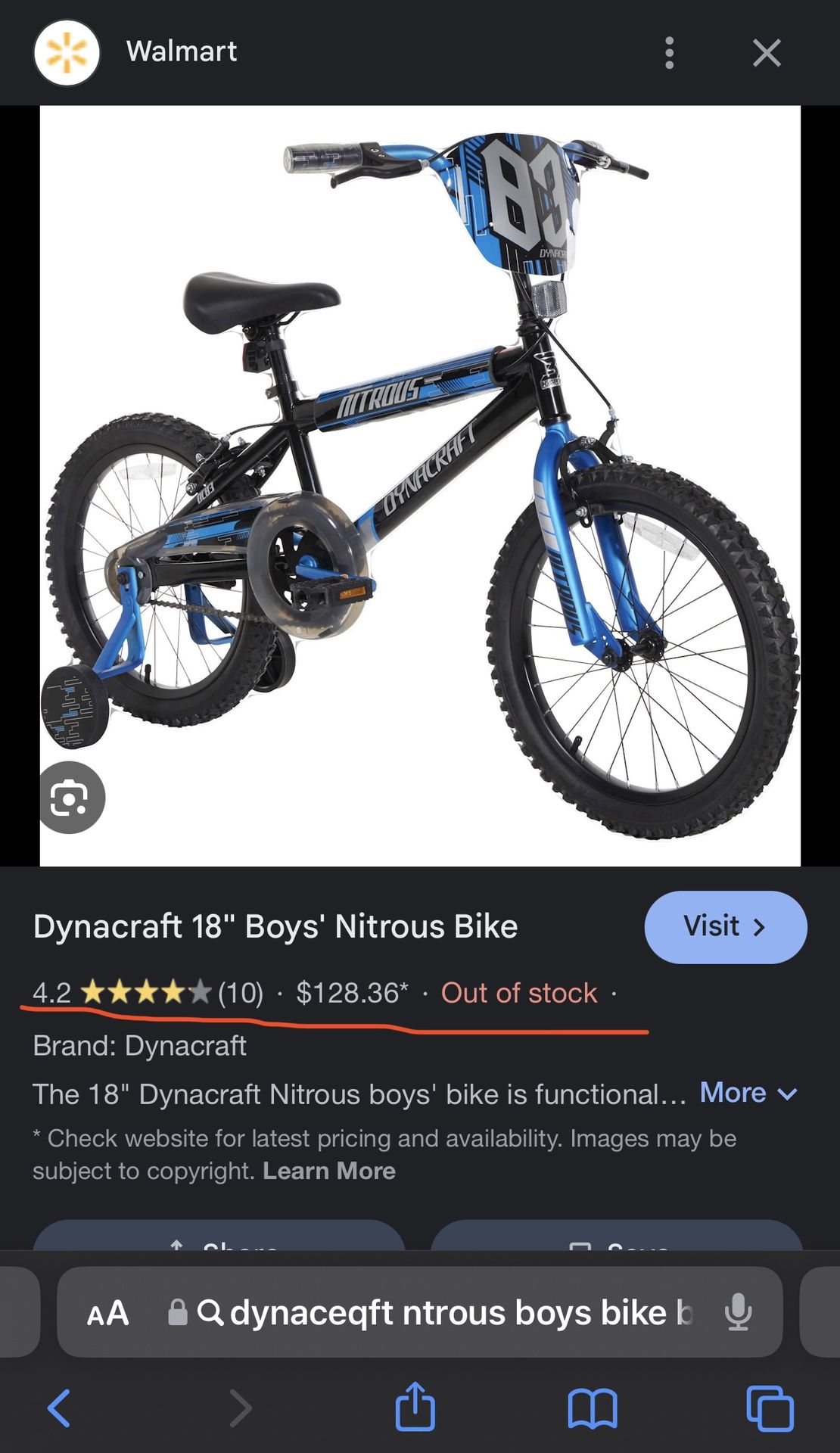 Dynacraft 18” Boys Bike Nitrous Bike never used back wheel is bent you will need to replace only asking $20