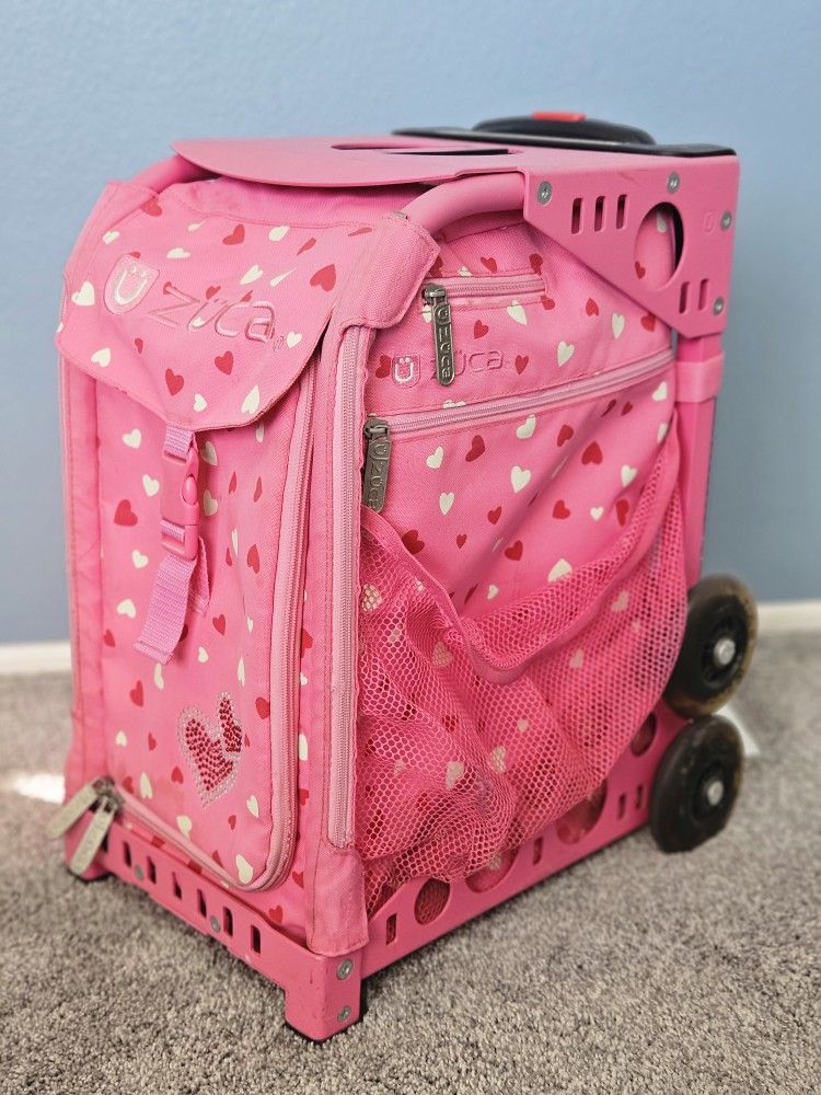 Not even sure if these are a thing anymore they were over 10 years ago! Lol Got it! That makes sense. Here’s a revised version for you: ZUCA rolling backpack, pink with red and white hearts. Normal wear and tare. Originally, these were quite pricey (around $100), but now it’s more of a budget-friendly find. If you’re looking for a fun, quirky backpack for a small price, this is it!