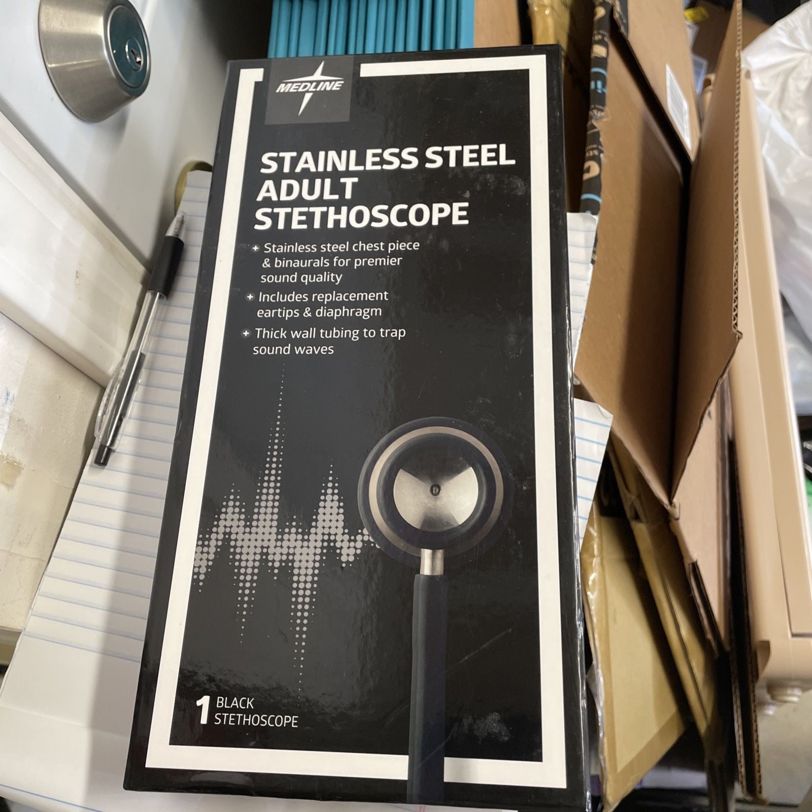 New open box Medline stainless steel stethoscope.