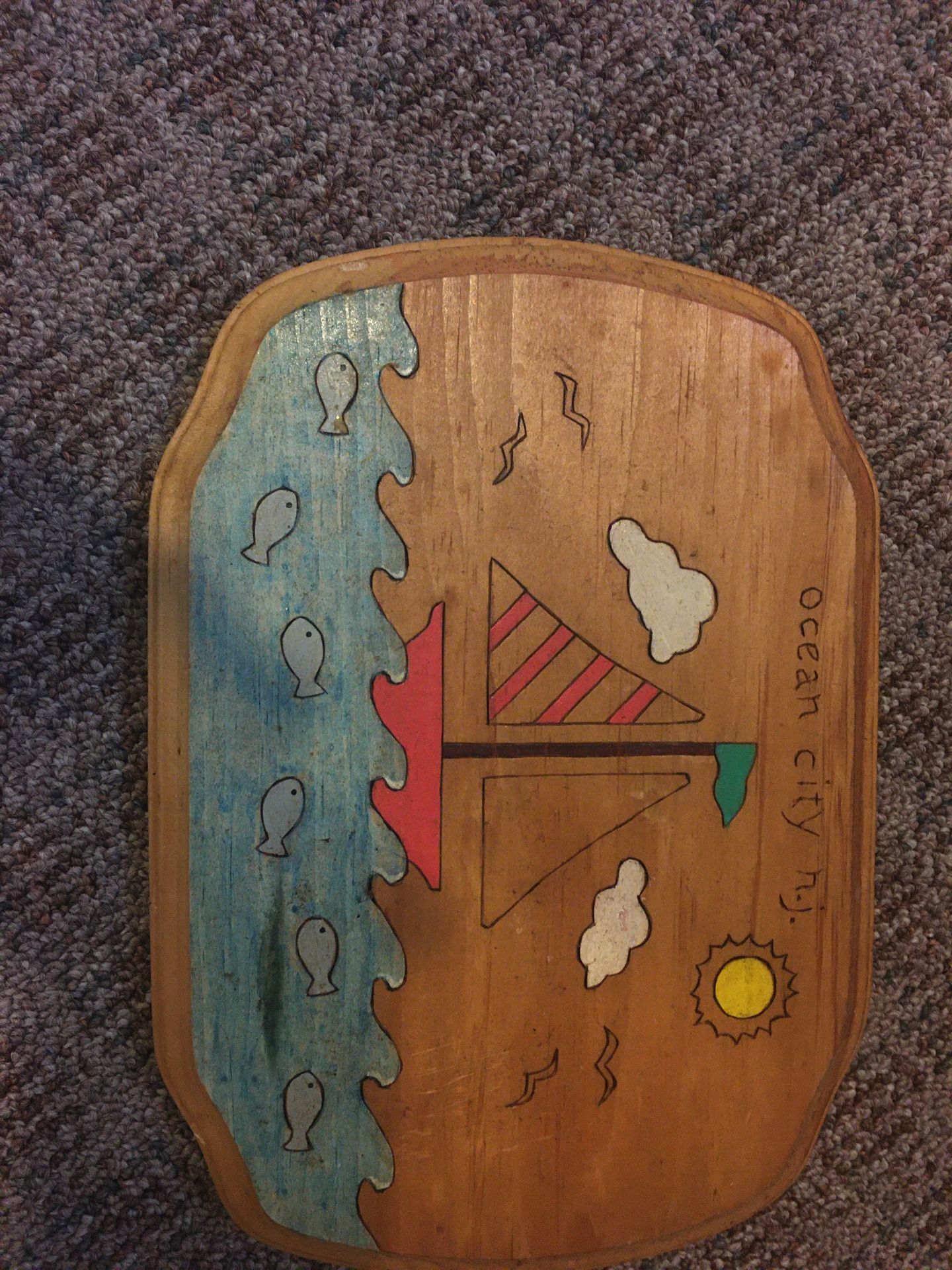 Ocean City NJ wood painting. Measures 7x9 1/2 inches. Preowned good condition no known flaws