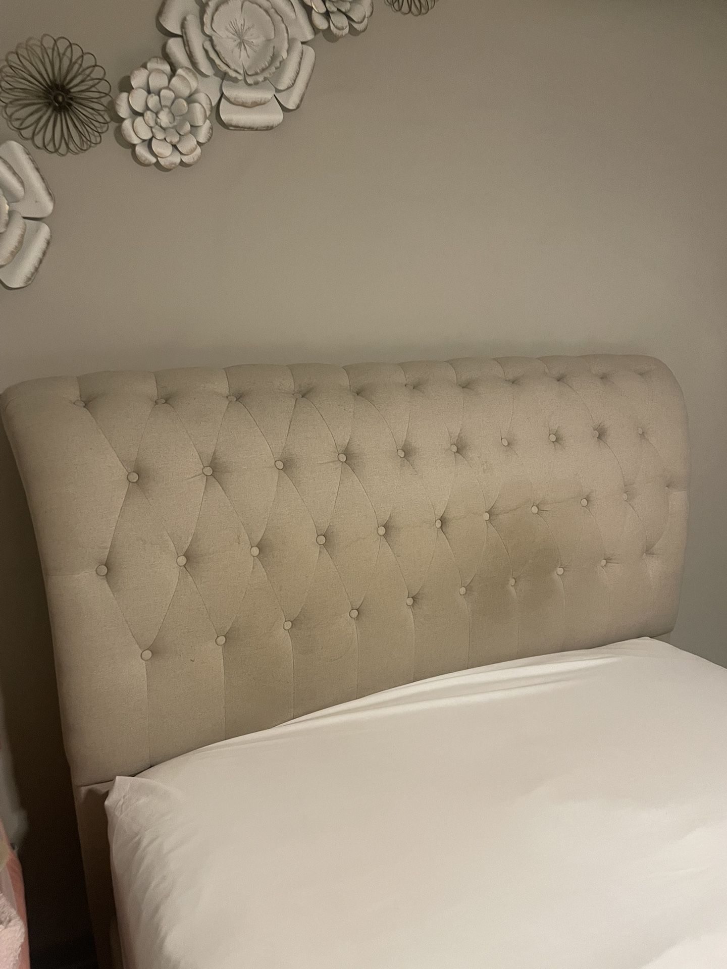 Sleigh Headboard & Footboard originally purchased from Raymour & Flanigan for $1,999 Has a stain but can be cleaned