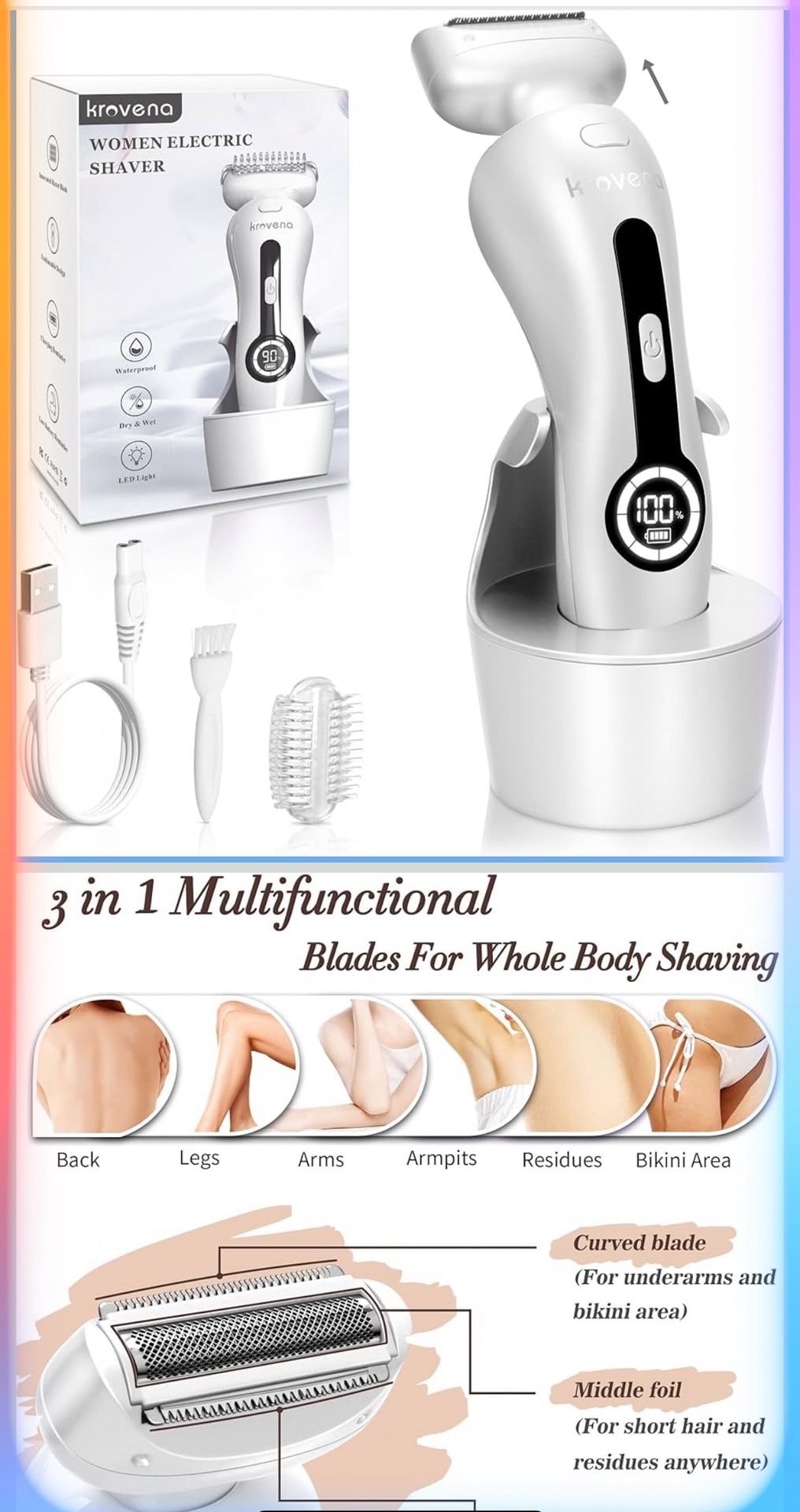Electric Shaver for Women Electric Razor for Womens Bikini Legs Underarm Public Hairs Rechargeable Trimmer with Detachable Head Cordless Wet Dry Use