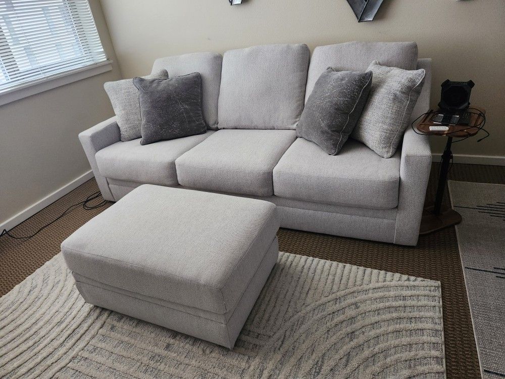 Light gray sofa and ottoman, good shape barely used no damaged, no stains no odor no pet usage.