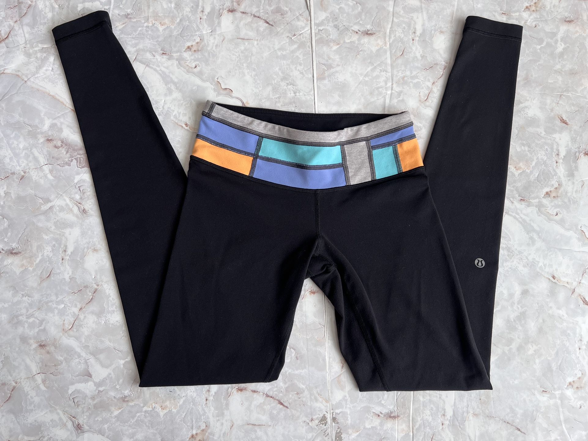 Lululemon Activewear Colorblock Waist Ankle Leggings Black Pants Size 4