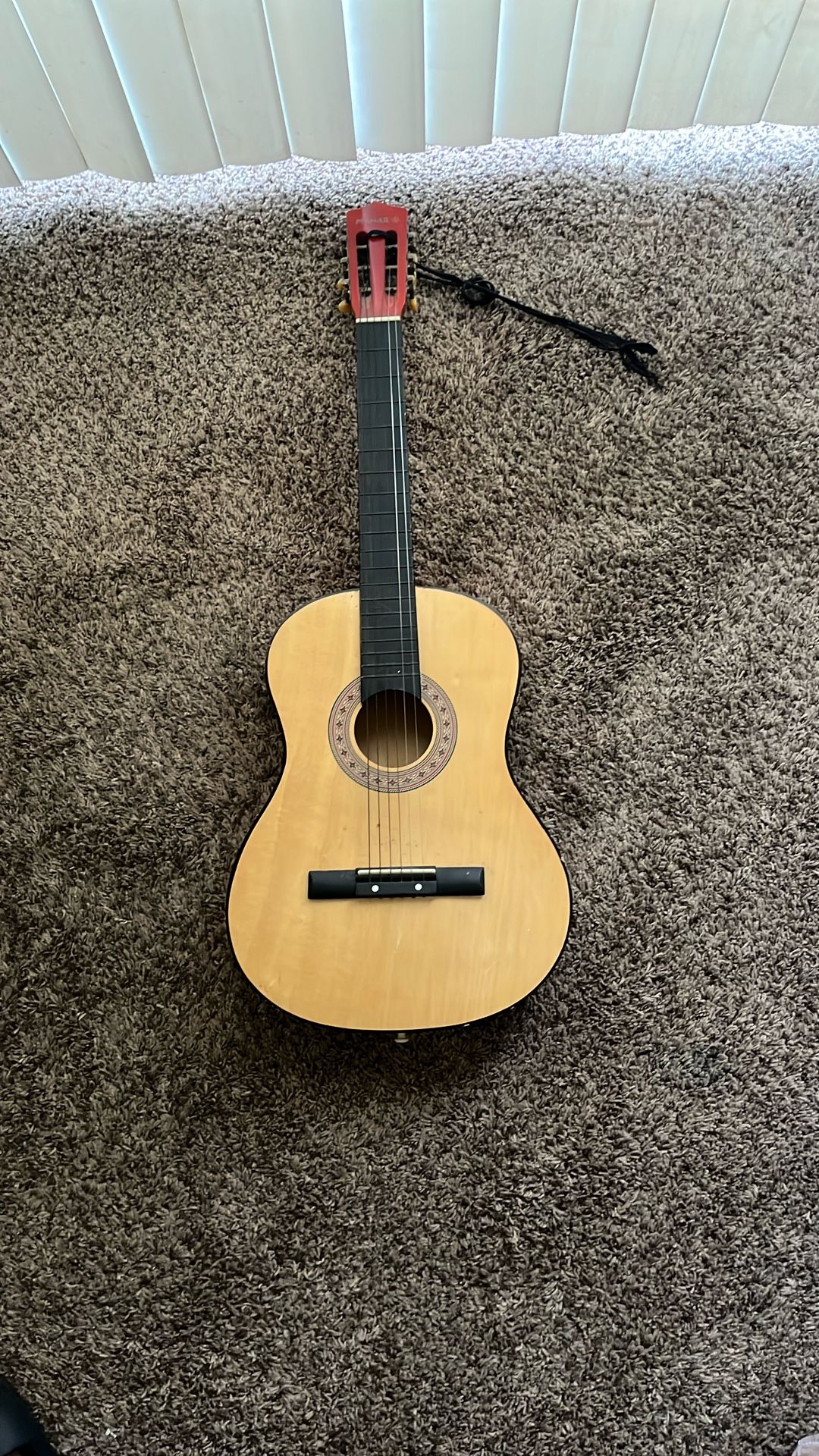 It’s basically a basic guitar, it works fine but one of the stings are broken that’s the only problem to it but it works good!!