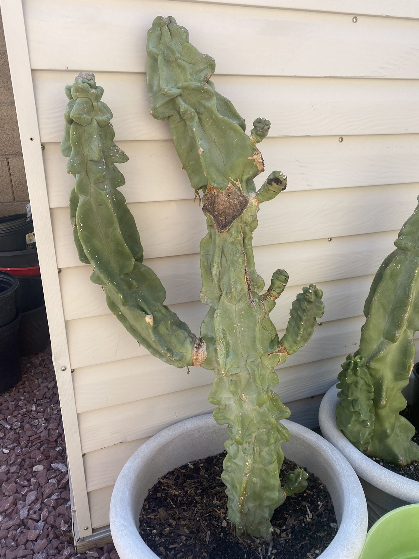 Rooted spineless totem pole cactus with 5 pups actively growing and another starting. Healthy and thick with tons of bumps and character. Stands 38” at my soil line. Sold as bare root, no pot.
