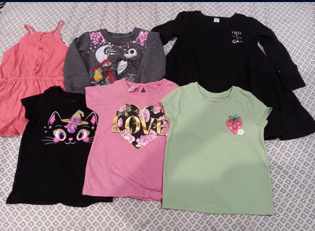 Children's Place Black cat shirt New Real love pink/ gold shirt w/tag New Cat N Jack light Green shirt no tag, New Old Navy black dress " This girl Can " no tag, Isaac Mizrahi NY. ROMPER with fringe, Disney " The Nightmare before Christmas "( xsmall). All Size 4T Please visit my page to view more items Thank you N28b/8825