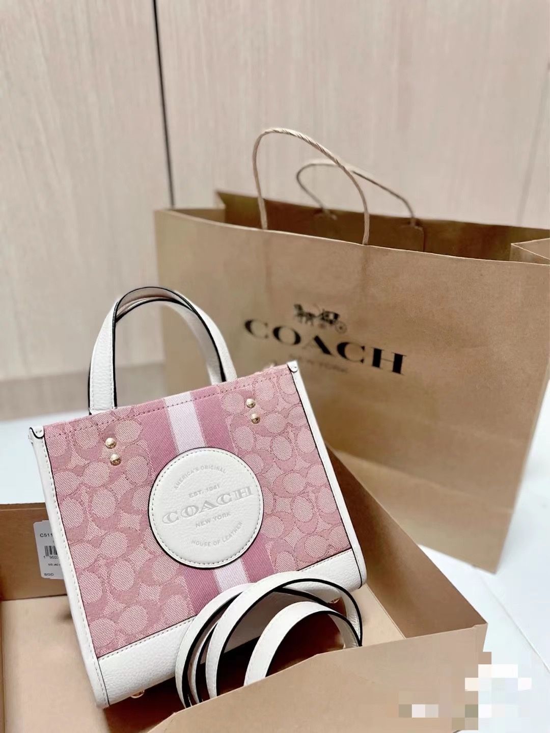 Dempsey Tote 22 In Signature Jacquard With Coach Patch And Heart Charm Brand New 100% Authentic Bought through Coach Outlet website or Coach stores. Can show proof of purchase Product Details Signature jacquard and refined pebble leather Inside zip and multifunction pockets Snap closure, fabric lining Handles with 4 1/4" drop Detachable strap with 22 1/2" drop for shoulder or crossbody wear Four protective feet at base 8 3/4" (L) x 7 3/4" (H) x 4 1/4" (W) Style No. C7965