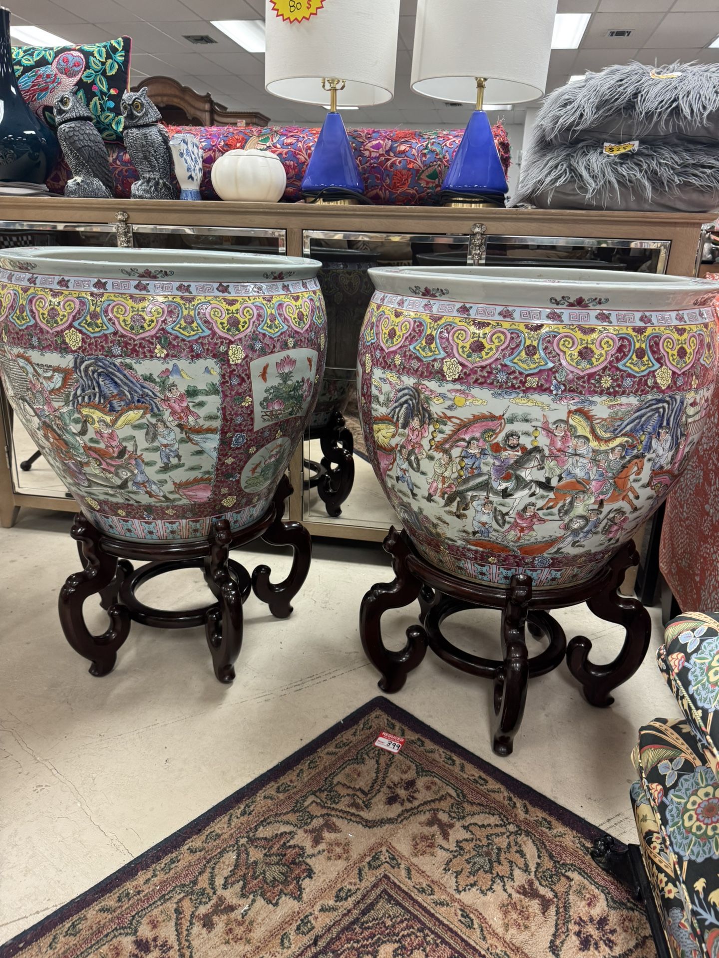 PAiR OF VINTAGE 1960’S CHINESE QING PORCELAIN JIAQING NIAN ZHI STYLE FISH BOWLS PLANTER - RETAIL: $4500