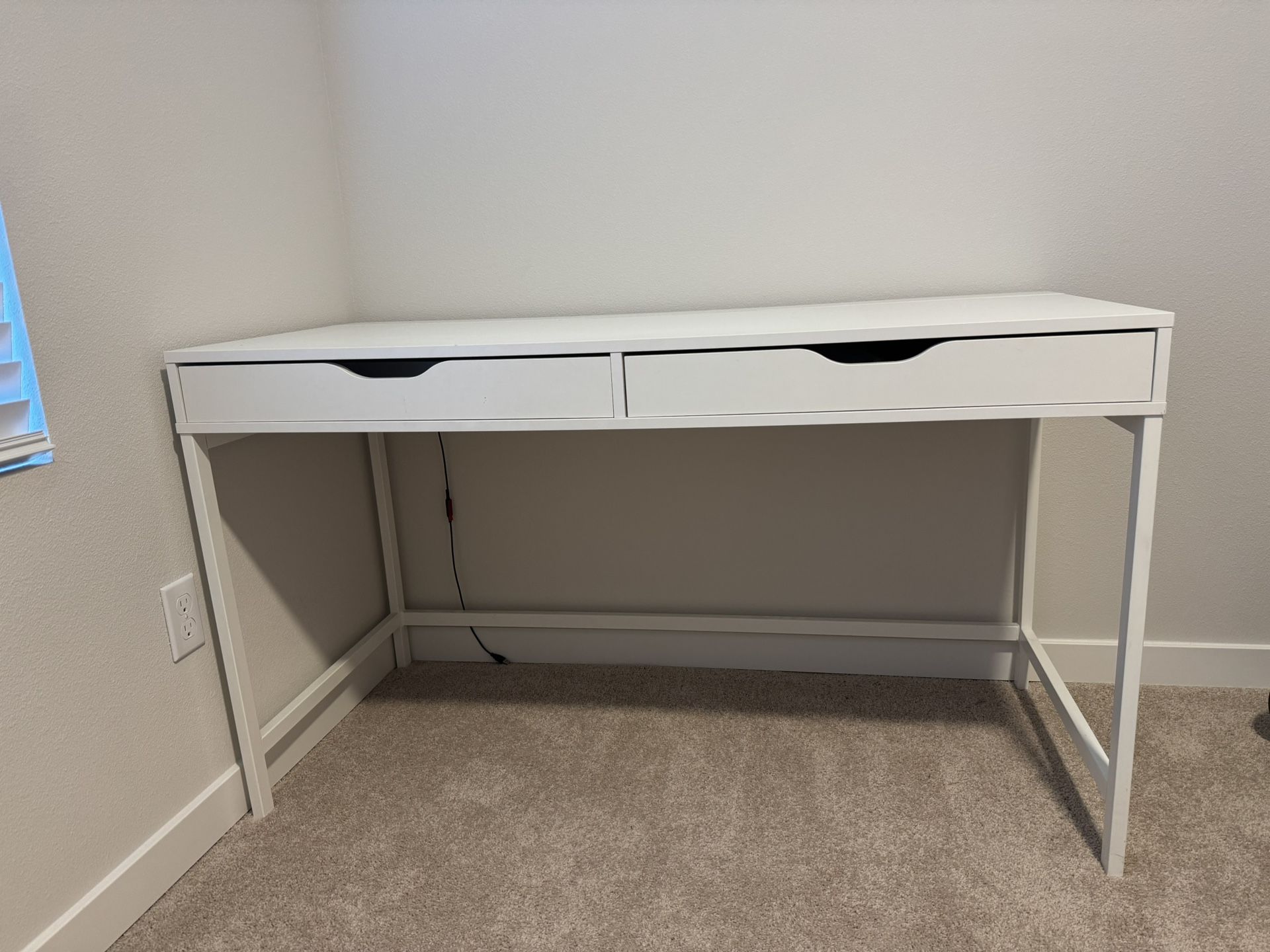 White IKEA Alex desk in good condition. Modern and minimal design with a spacious tabletop, built-in drawers for storage and built-in cable management to keep cords organized & out of sight. Great for home office, studying, or gaming. Clean and sturdy, easy to match with any room. Ikea Product link - https://offerup.com/redirect/?o=aHR0cHM6Ly93d3cuaWtlYS5jb20vdXMvZW4vcC9hbGV4LWRlc2std2hpdGUtODA0ODM0Mzgv