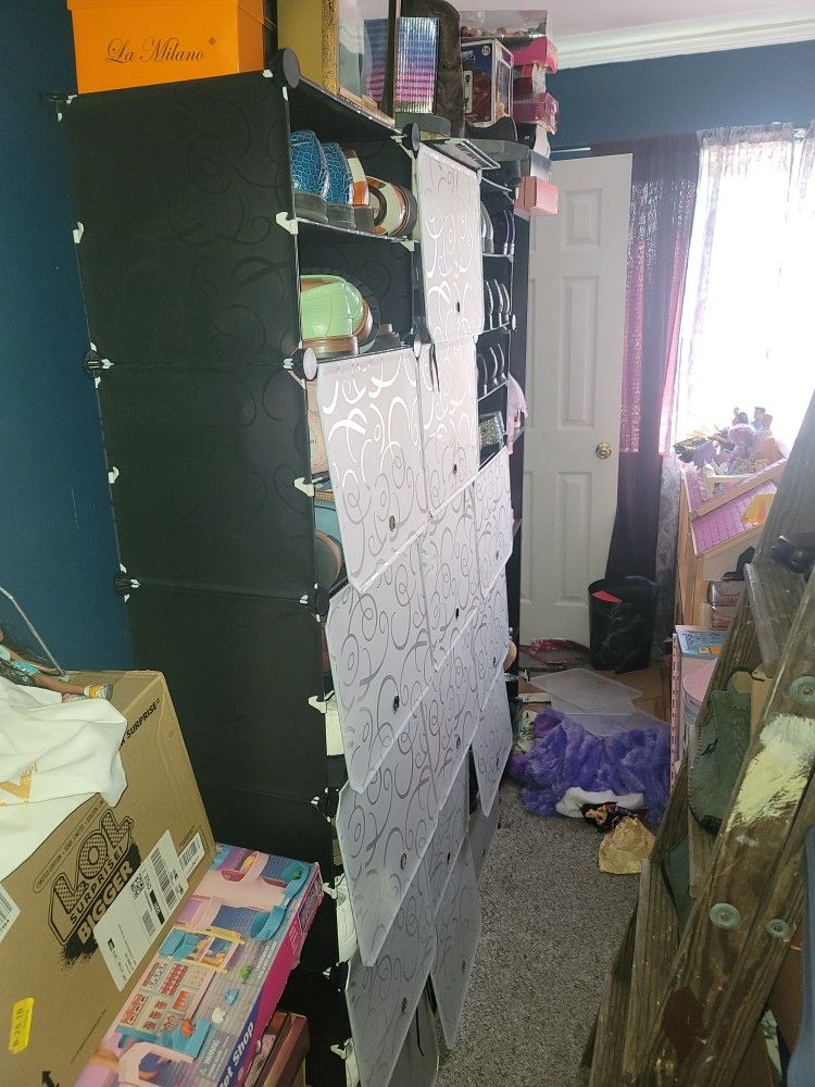 This shelf is pretty much brand new. My needs have changed so I want to sell it. It holds 45 pairs of shoes and u can set it up how you want to. Great for temporary use in dorms/apartment/barracks It took me like an hour to assemble Has all parts nothing missing and there are a few extra pieces.
