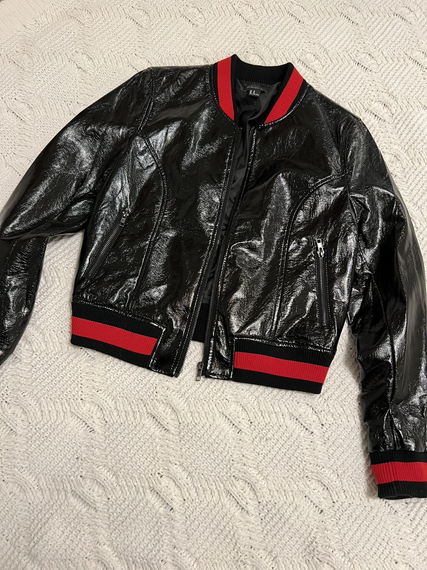 Size :M (fits like small ) Never worn Bright faux leather